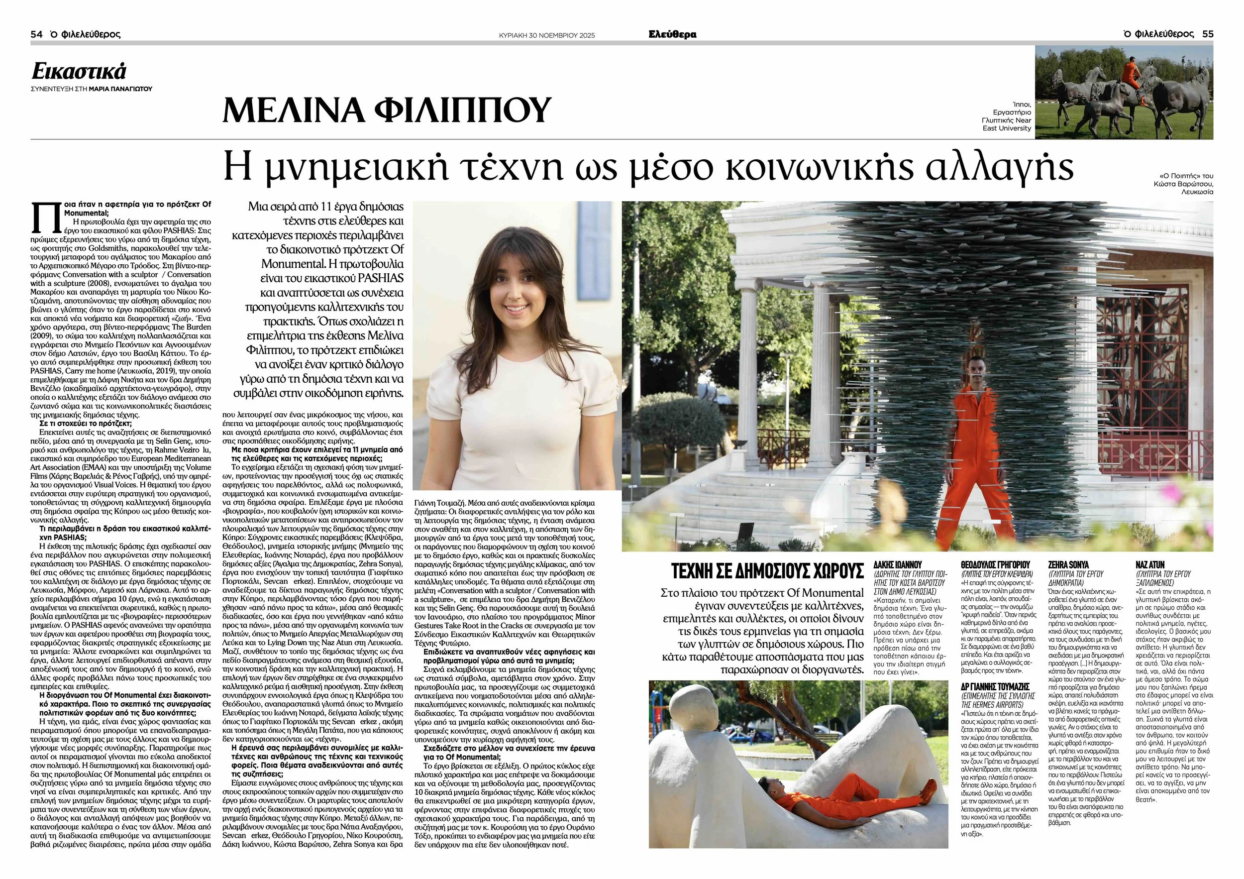 Monumental art as a means for social change: Interview by journalist Maria Panayiotou (MaP.) of Melina Philippou (MeP.)