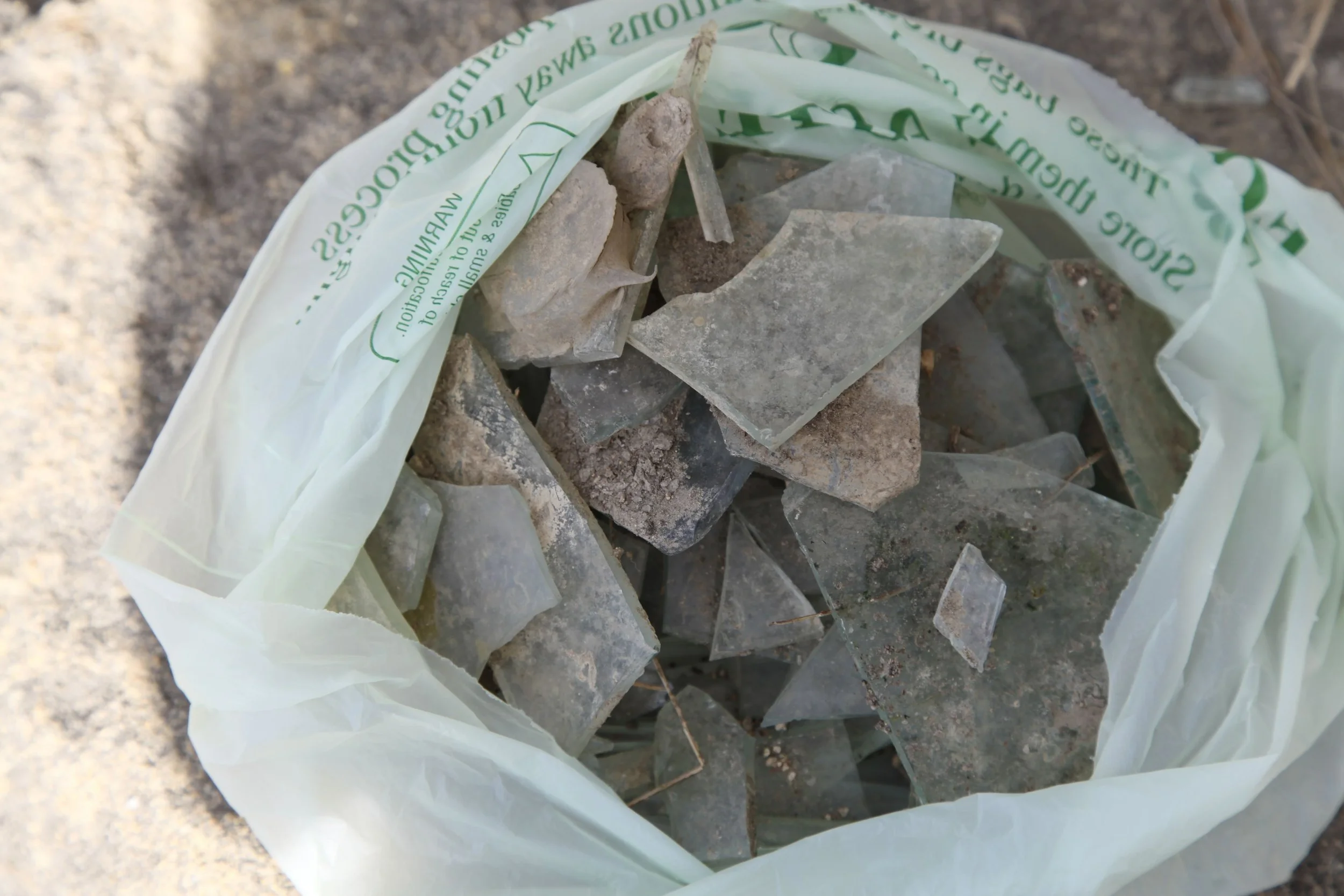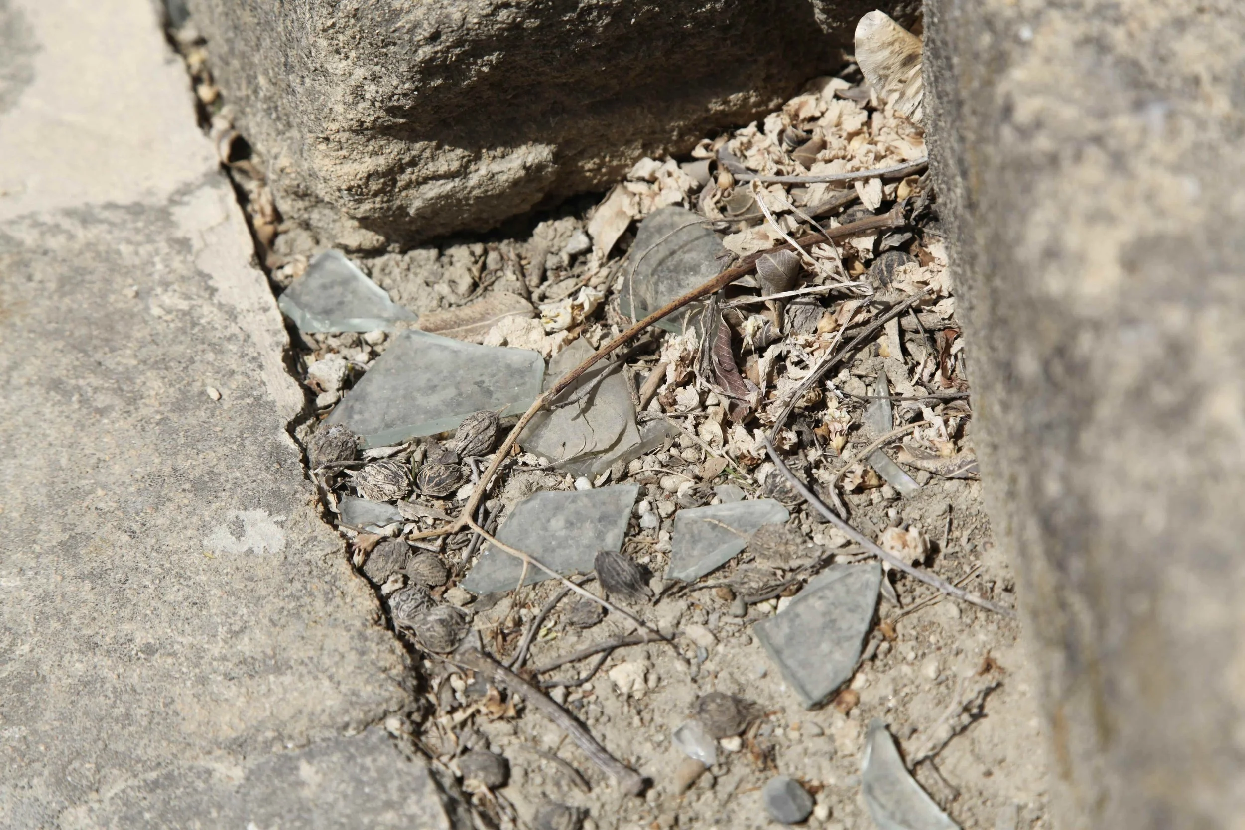 "Poet (PASHIAS Version)", Sculpture (Material: Glass shards resulting from the deinstallation of sculpture "The Poet I" at Famagusta Gate collected by the artist, 1:10 polylactide replica of the artist’s body, onyx stone)