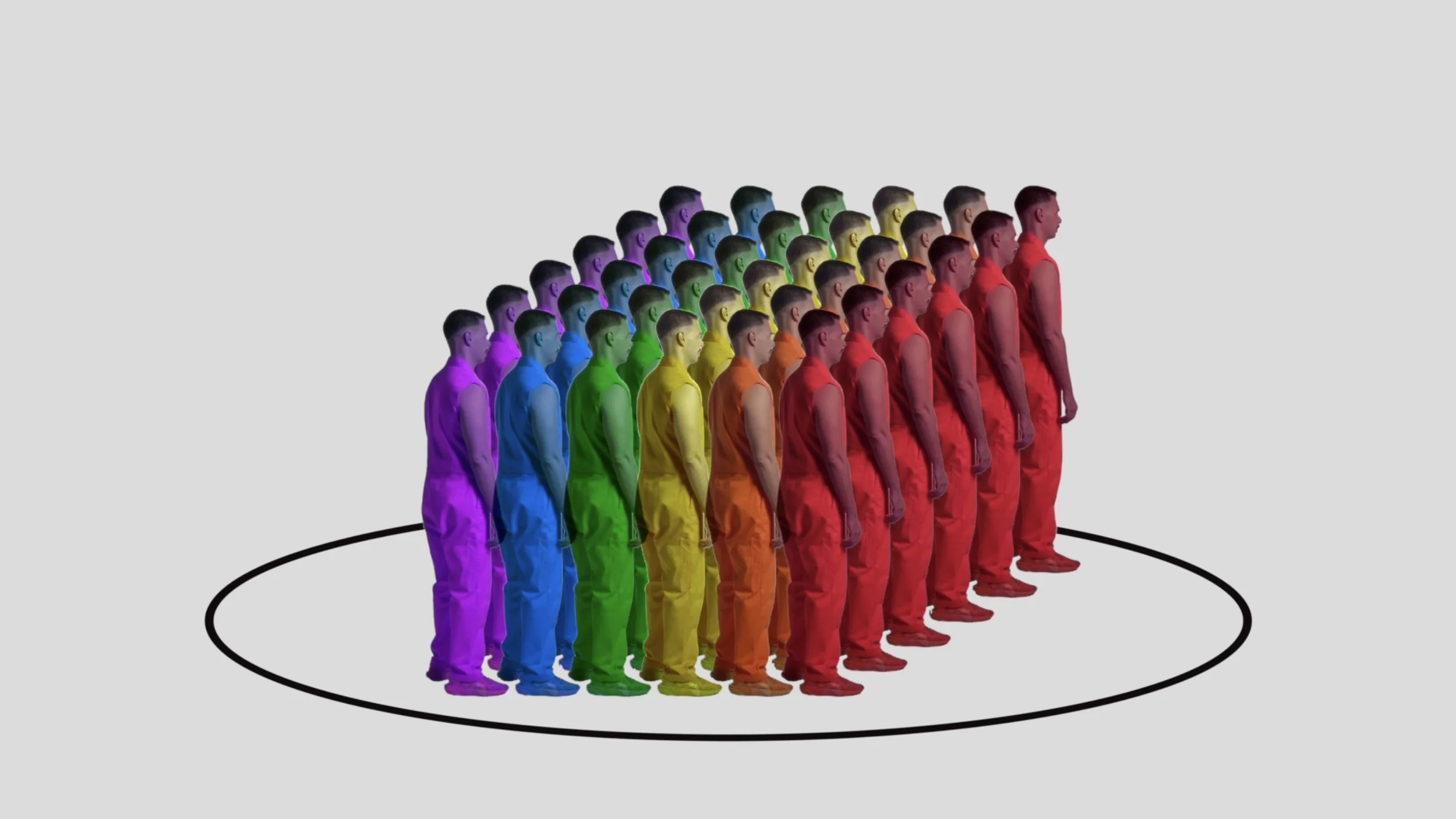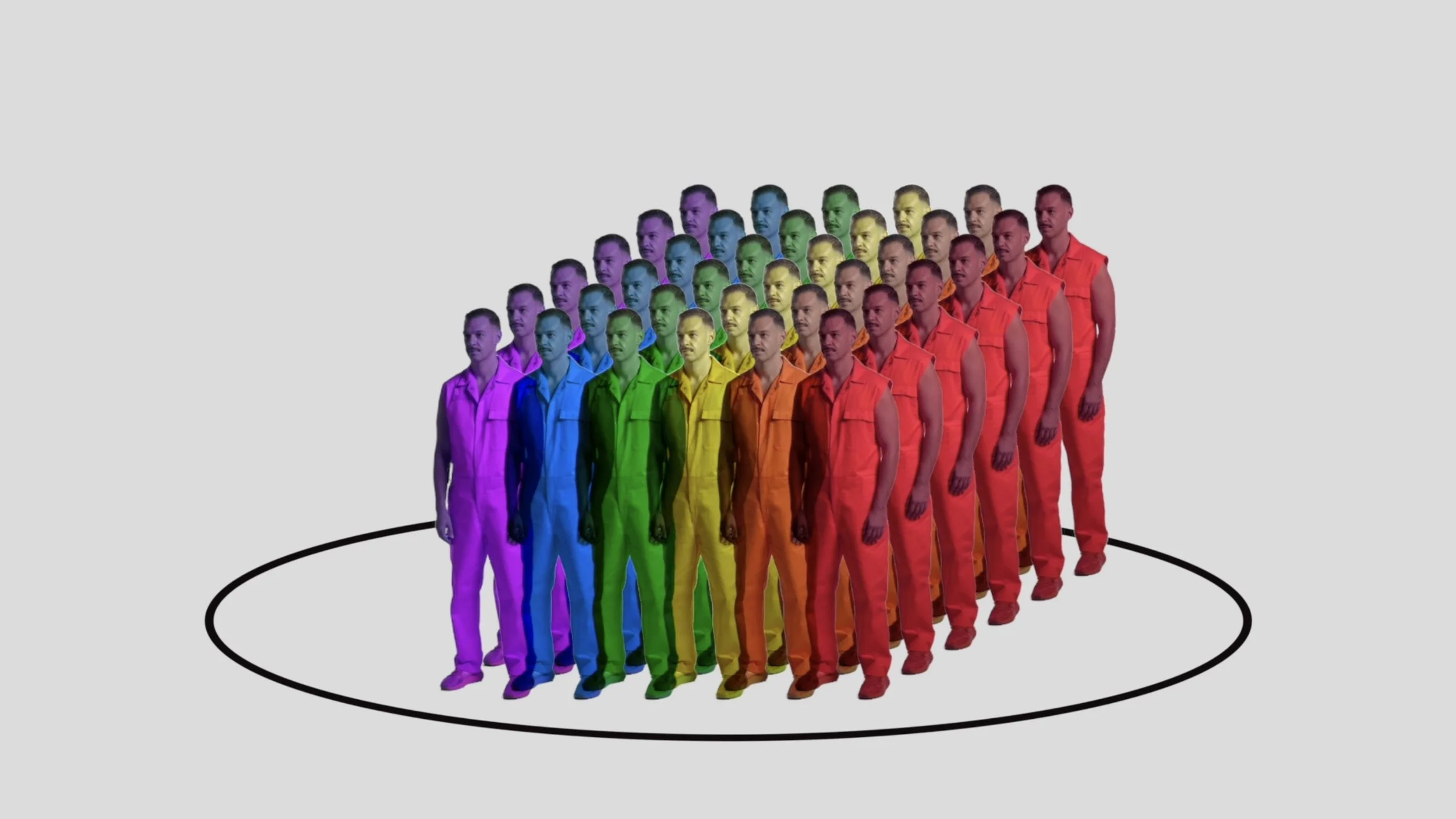 P: The "Rainbow" was erected in 1976 at the Kolokasides junction in Nicosia, as a collective effort and a personal testimony of hope by Nikos Kouroussis. "It consisted of thin columns painted in the colours of the rainbow, and when one moved around the composition, they saw the alternation of the coloured columns behind an outer row of grey ones. Through the grey, the colours of the rainbow appeared", the artist describes. It differs from the exhibition’s other works, as we recompose it digitally, with my body as its primary material. The human figure standing in for the column, multiplied into a social collective, continuously rotating. From grey, the colours of the rainbow are revealed, and vice versa. Instead of the viewer moving around the monument, the monument moves for them. It marks our first attempt to approach monuments that have been destroyed, or designed and never realized, touching on the imaginary, the made-up, the speculative.