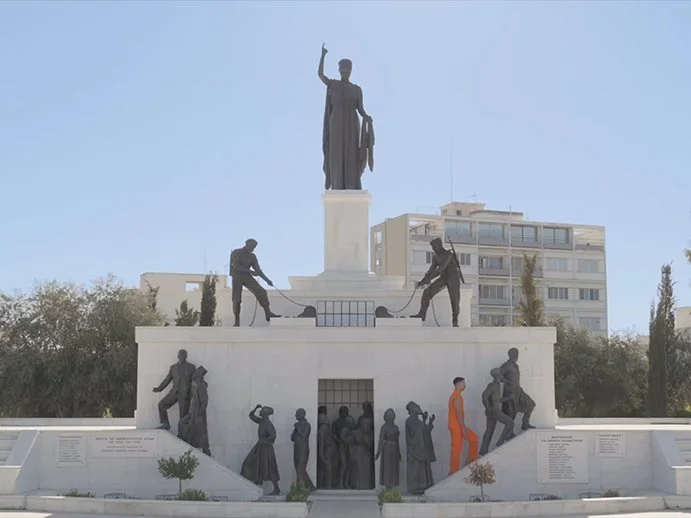 Building a fresh layer of sediment on this history, the project engages with the semantically dynamic nature of public art monuments through artistic interventions and systemic research. Internationally renowned visual artist PASHIAS, with a long-standing practice on public art interventions, explores how the human body and the medium of moving image can offer renewed and embodied perspectives on these historical markers, as experienced in space and time. Simultaneously, the research team comprised of architect and academic Dr. Dimitris Venizelos, researcher Selin Genç, audiovisual artist Rahme Veziroğlu, and curator Melina Philippou, study the histories of these public artifacts by assembling alternative and unexpected narratives through stakeholder interviews, archival research, and media documentation.